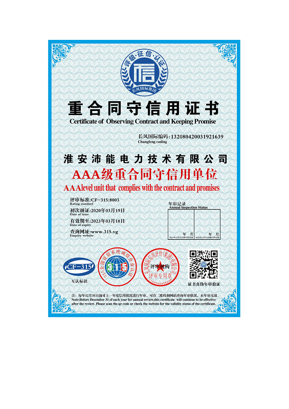 重合同守信用证书